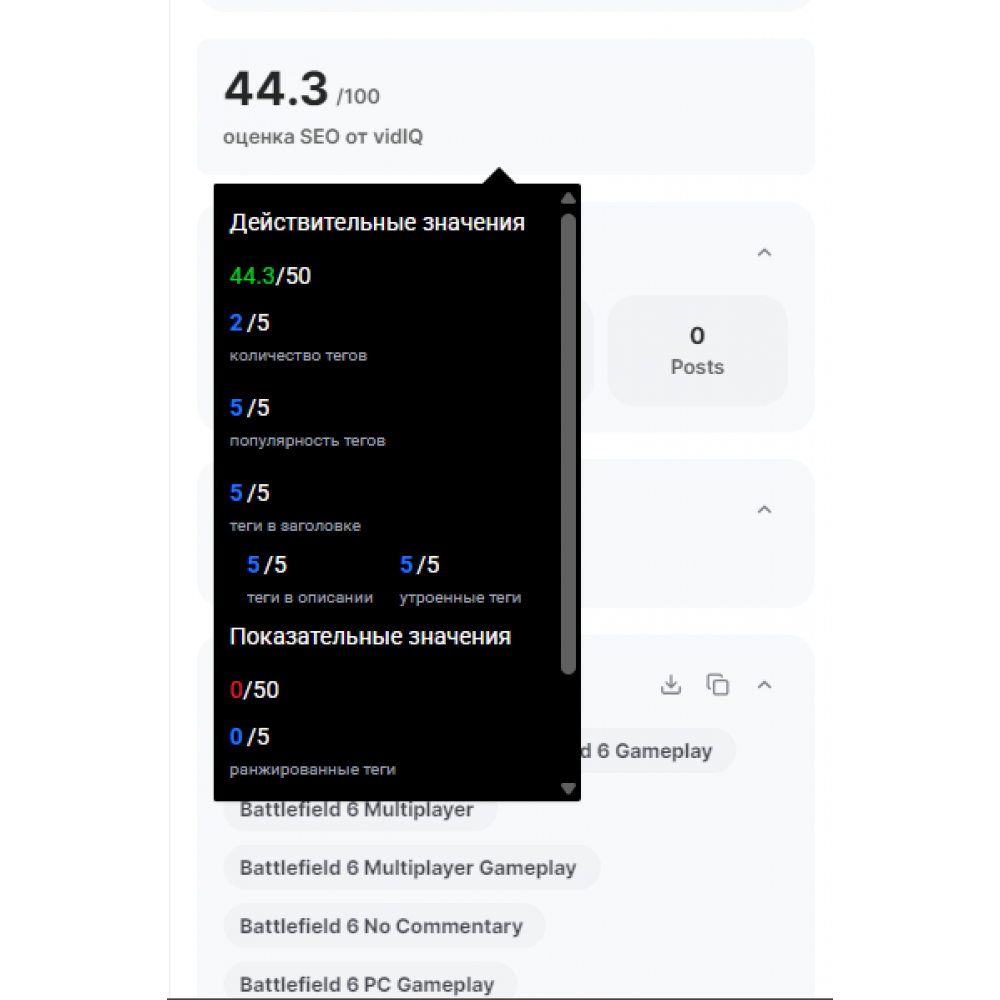 Um die Effektivität zu erhöhen, wählen Sie die richtigen Keywords: Wir empfehlen die Verwendung zusätzlicher Erweiterungen wie VIDIQ.